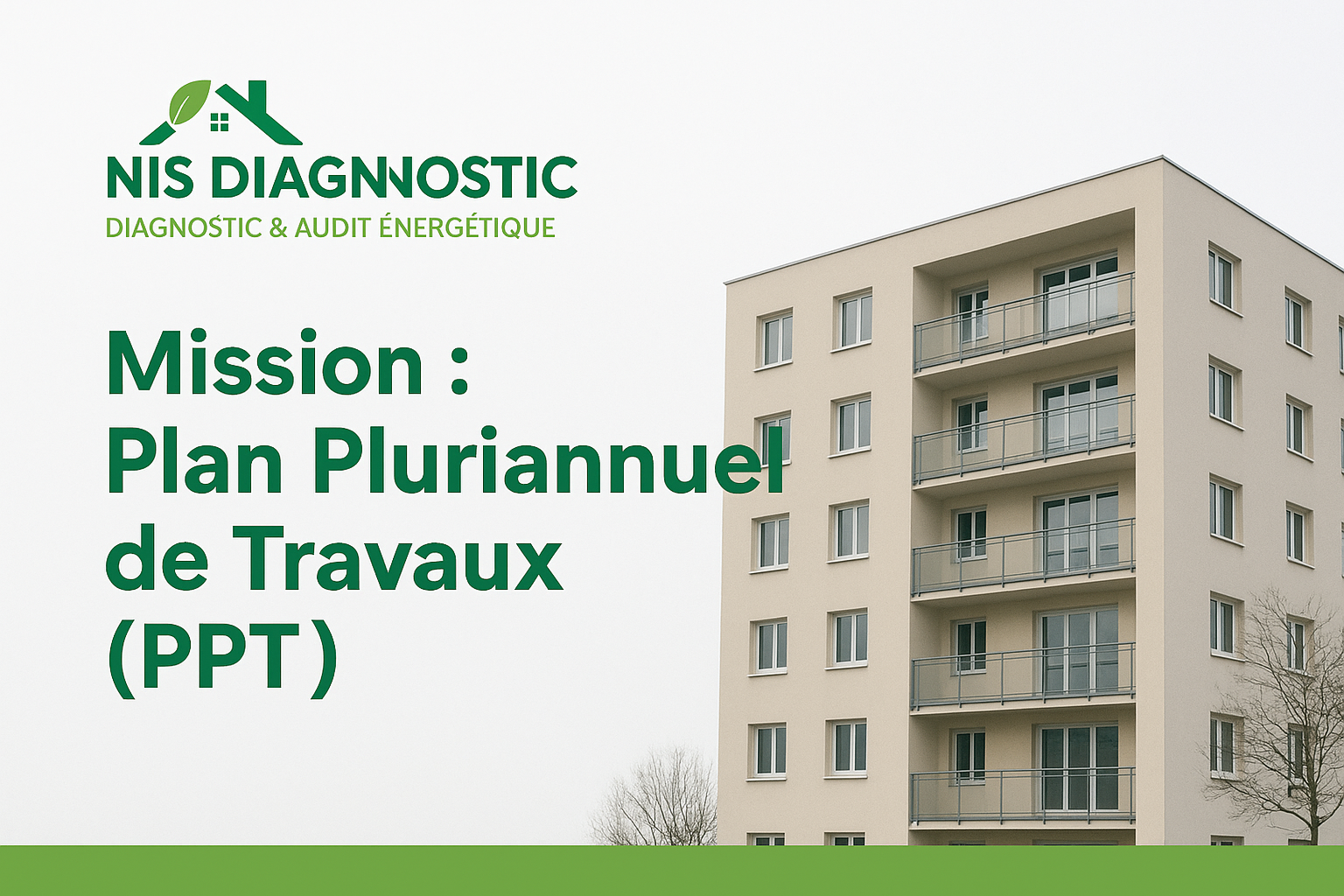 Chez NIS DIAGNOSTIC, nous réalisons les DPE collectifs, les DTG et vous aidons à préparer votre PPPT pour une présentation claire en assemblée générale. Notre expertise vous garantit un plan conforme à la réglementation et adapté à votre copropriété.